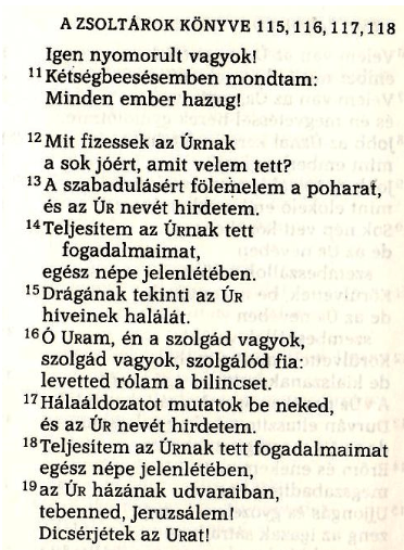 116:13 A szabadulásért felemelem a poharat, és az Úr nevét hívom segítségül