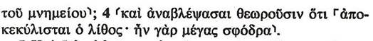 János apostol volt az, aki Péter apostollal együtt, – elsőként – a tanítványok közül látta az üres sírt felnyitva. Azonban az ő evangéliumi leírása több mint 60 év után a kisázsiai Efezusban készült. Ő egyik görög tanítványának, Pápiásznak diktálta az evangéliumát. Ott nem szerepel az „elgördítés”szó, hanem a „felemelni,- és elvinni, az ,,,airó,,,szó szerepel grammatikával ellátva,: „Hérmenon,,, = airó,+ perf. part. pass. Az igaz, hogy egy helyére gördített sírzárókövet emelni, és gördíteni is kellett egyzárt sír kinyitásához. Egy kocka formájú zárókövet nem lehet „gördíteni”! Aszinoptikus evangéliumokban szereplő kifejezés egyértelműen „el” illetve „rágördítést” jelent. Ez a görög szó semmiképen nem jelent emelést, vagy „valahová emelést”. A klasszikus görögben is, a Koinyé-ban is, – a Jézuskori görögben – a szógyökér ”kör”-görbe,-kerek – és sok rokon kifejezés! János apostol görög anyanyelvű írnoka úgy írta le, ahogy elképzelte az elmondottakat.
